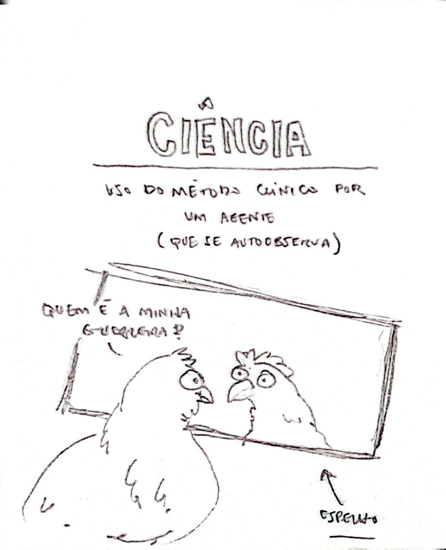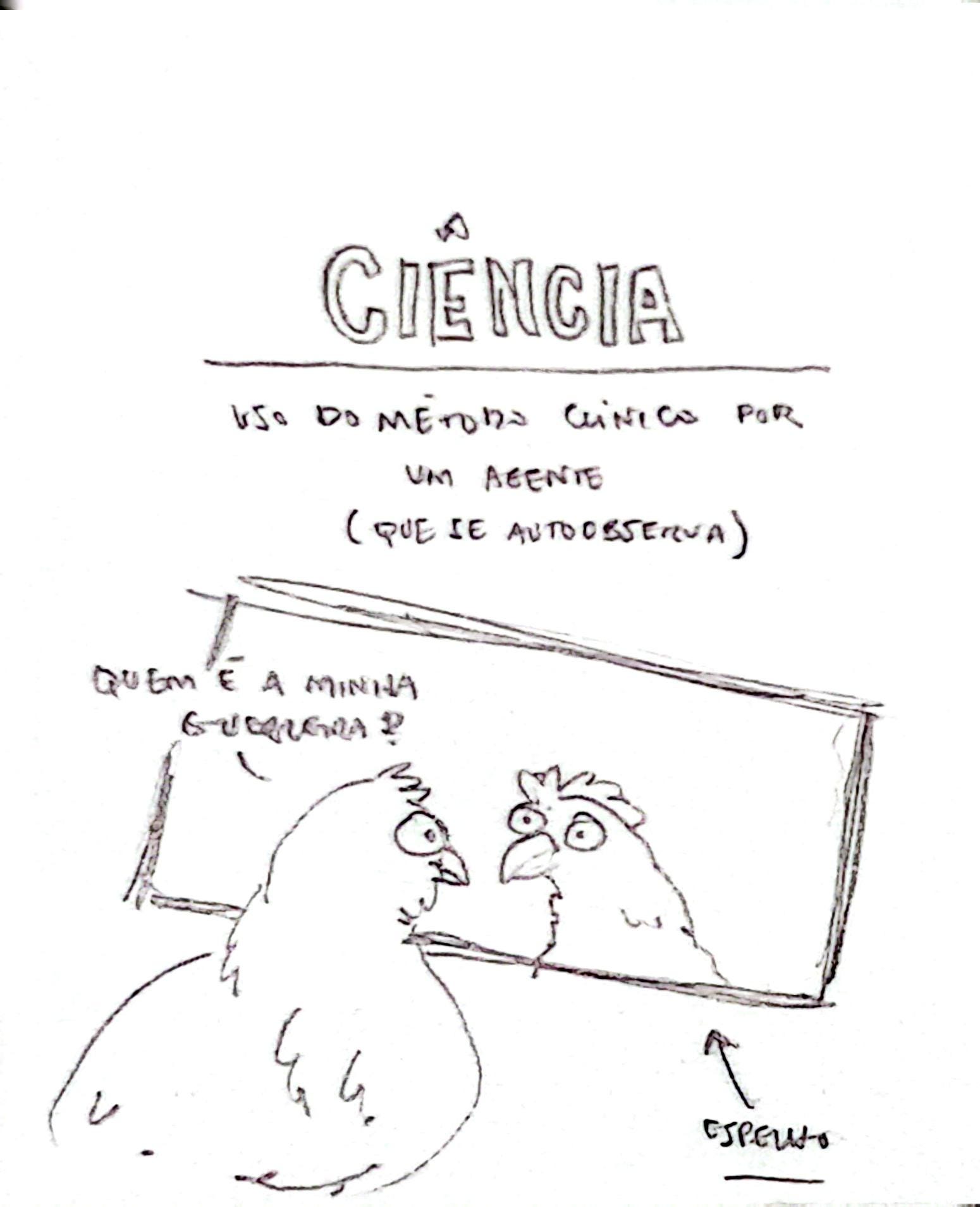 Já a ciência seria o uso do método cientifico por um agente que se auto-observa. Conforme a ciência dele progride o agente muda (com aquilo que faz).